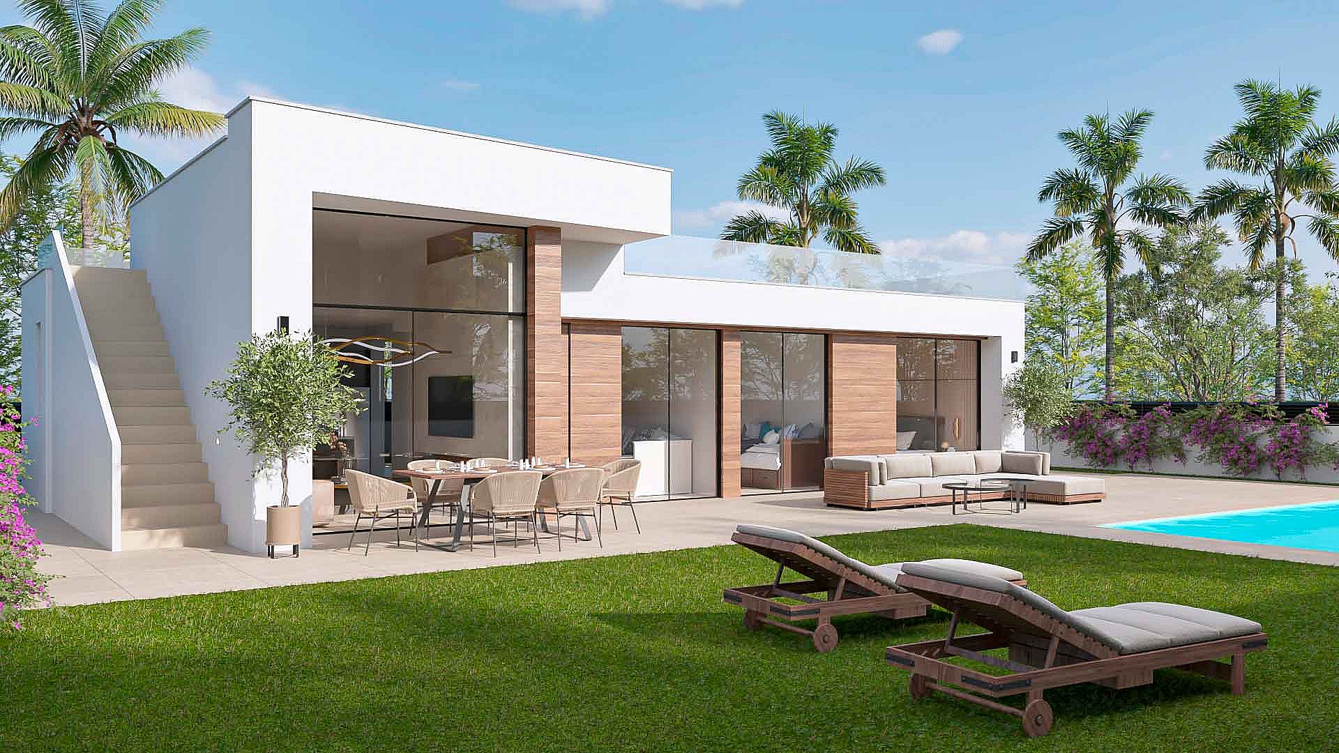 Luxe villa's in moderne stijl met 2 of 3 slaapkamers en 2 badkamers op grote percelen.