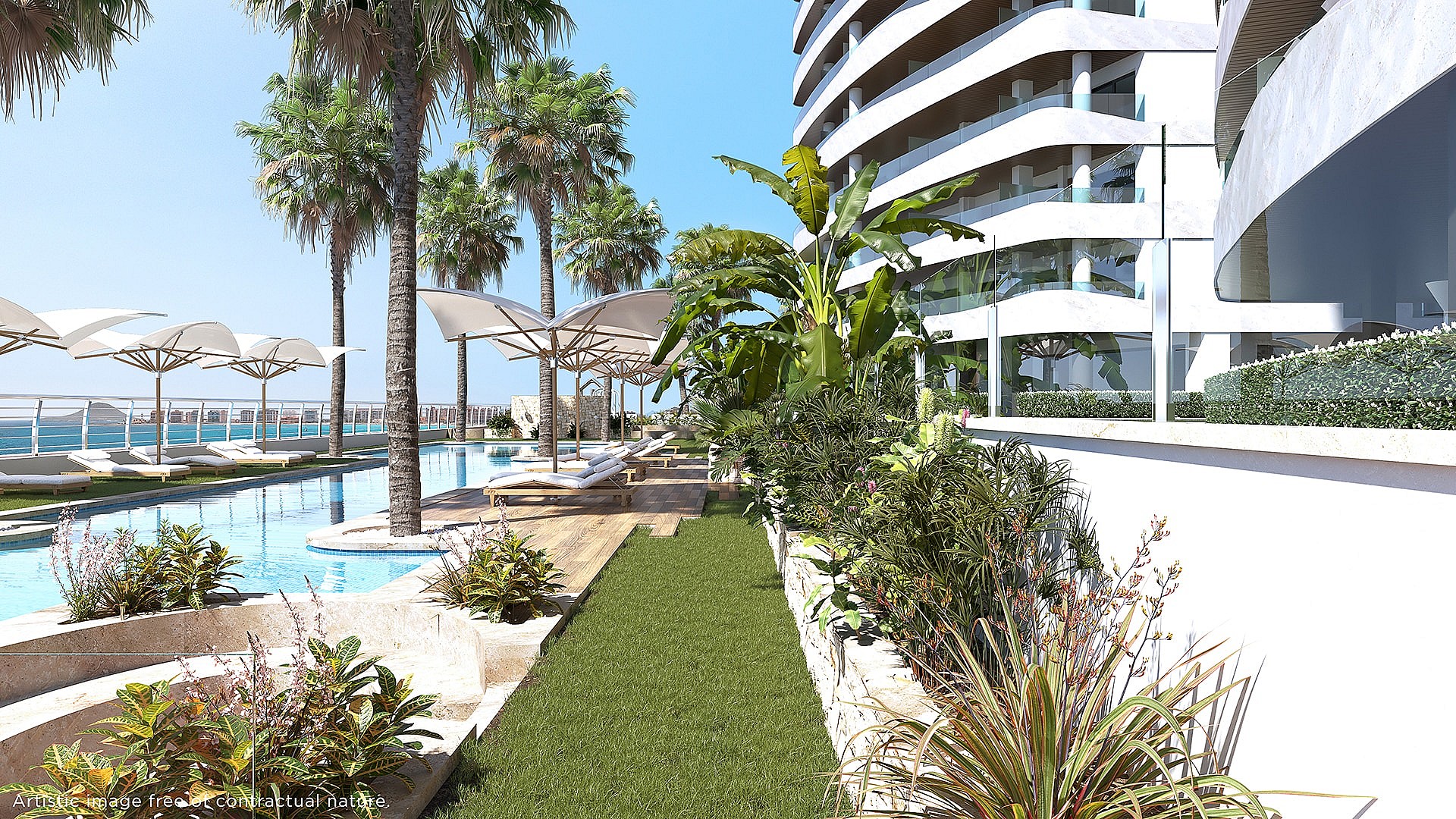 Direct aan het strand van La Manga del Mar Menor, Costa Cálida. Het complex bestaat uit twee torens, elk met een ruim privéterras en panoramisch uitzicht op de Middellandse Zee. Met hoogwaardige afwerkingen en voorzieningen zoals een zwembad, fitnessruimte, en een luxe spa. De locatie biedt directe toegang tot Blauwe Vlag-stranden en een breed scala aan lokale voorzieningen, waaronder restaurants, winkels en strandclubs.